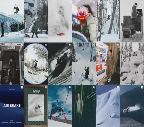 Instagram 上随处可见的,是滑手在跳台上腾空后扬起雪粉的瞬间、在栏杆上轻盈滑行的慢镜头,或是深雪里一头扎进粉雪的玩闹感。