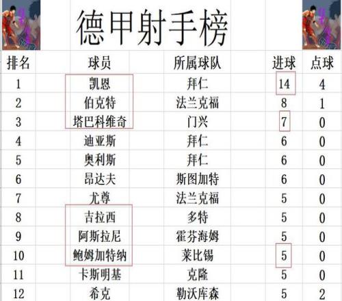 德甲最新积分战报莱比锡闷平门兴难追拜仁多赛一场落后5分
